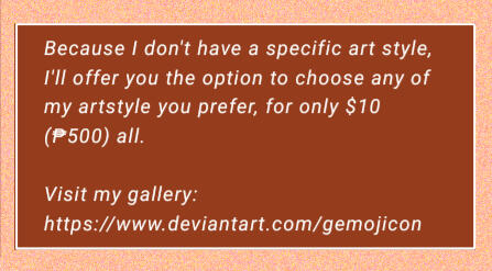 Greetings! I'm a novice artist hailing from the Philippines. My main passion lies in anime, although I also enjoy Marvel movies and cartoons. Drawing has been a cherished pastime of mine since I was a young child. Initially, I would often sketch my beloved fictional characters from the TV shows I watched. As time went on, I dedicated myself to enhancing my artistic skills. I began by creating fanart and have since expanded my repertoire to include original characters (OCs).I created my first Twitter account in 2017 and later changed it to become what it is today. I subsequently created an account on DeviantArt, but I had numerous accounts long before that, which I was unable to access since I couldn't remember my passwords.After some time, I made a deliberate choice to turn my beloved hobby into a source of income to meet my daily needs. I came across artists who sustain themselves by accepting commissioned work, and their stories served as a great inspiration to me. By the way, I wanted to inform you that I'm currently a college student, specifically studying healthcare, which might present challenges when taking on commissions. Due to this circumstance, please understand that the completion time for the artwork might exceed your initial expectations. Both of us will require a fair amount of patience, so to speak. Nonetheless, I am fully committed to putting in extensive effort to provide you all with the best possible service.Lastly, as I did not have the opportunity to attend art school or receive formal art lessons, I had to teach myself the craft. Due to this, it is important to anticipate occasional errors and inconsistency in the quality of my work. However, please rest assured that I am committed to continually improving and honing my skills as time goes on.